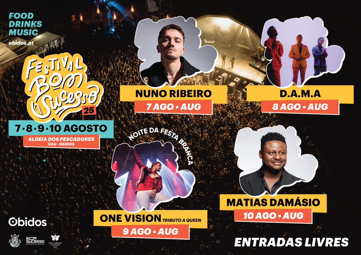 Nuno Ribeiro, D.A.M.A, One Vision e Matias Damásio são os cabeças de cartaz da edição 2025 do Festival Bom Sucesso, evento que se antecipa memorável e que promete, uma vez mais, surpreender. A edição deste ano decorrerá entre os dias 7 e 10 de agosto, garantindo quatro dias de boa música e de muito entretenimento para todos os públicos.