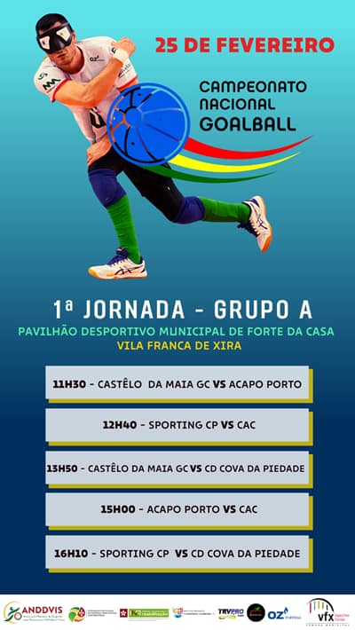 Numa parceria entre a Associação Nacional de Desporto para Pessoas com Deficiência Visual e a Câmara Municipal de Vila Franca de Xira, decorre no próximo dia 25 de fevereiro, no Pavilhão Desportivo Municipal do Forte da Casa, a 1ª Jornada do Grupo A do Campeonato Nacional de Goalball.