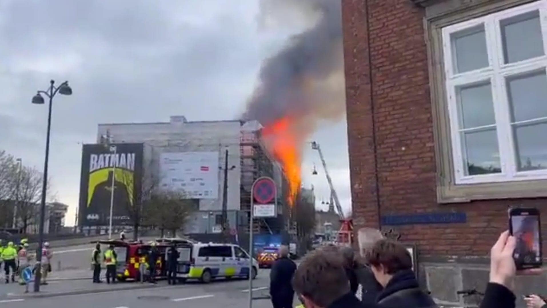Os serviços de emergência e os bombeiros dinamarqueses estão no local para tentar extinguir o incêndio, enquanto a polícia isolou uma grande área junto ao edifício localizado no centro da cidade de Copenhaga.