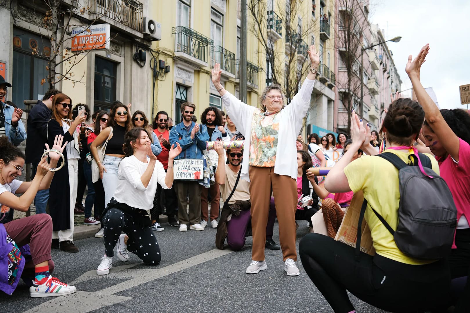 Entre os vários cartazes erguidos, estavam também expressas revindicações e angústias: “A juventude precisa de casa para viver!”, “Imigrantes, bem-vindos!”, “Habitação não é privilégio, é direito”, “Um hotel para o inglês e uma despensa para o português” e “Queria sair da casa dos meus pais, mas a renda não deixou”.
